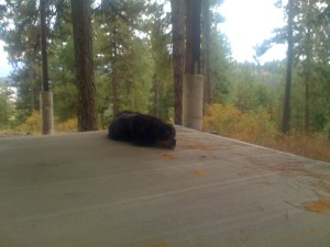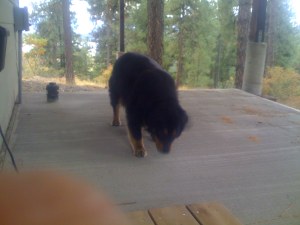 Now there is a happy dog! Do you see the smile? Yep, we are pals and it’s a good thing too. It get’s lonely on the mountain and it nice not have a source of contention when it’s not needed. I stayed out as long as possible but here it gets cold at night and I had a baseball game calling me inside. I felt a little sad when I left him outside. I mean look at him.