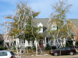 Oh Ho! Yep, people still do this. I have memories of getting five pennies scotch tapped together and wanting to say, “no, no…you keep it. I’ll only throw it through your garage window when you shut the door.” I still don’t understand the thought process behind this. These people actually taped five pennies together which, if i did my elementary math correct, meant they probably blew the same amount of money pissing off the neighborhood kids that could have been spent on Snickers. Plus, a handful of pennies can do this if thrown hard enough.