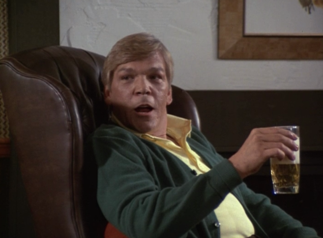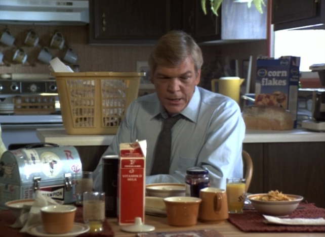 Now that the law has been laid down, it’s Miller time. His wife is noticeably upset (based on her furious knitting) but what’s done is done and Tom kicks back a brew stating not once but twice, “That’s why God made fathers, babe.”.