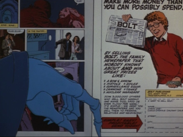 Anyway, they flip to the voodoo doll ad that had already been cut-out. Already been cut-out? Uh oooooh!