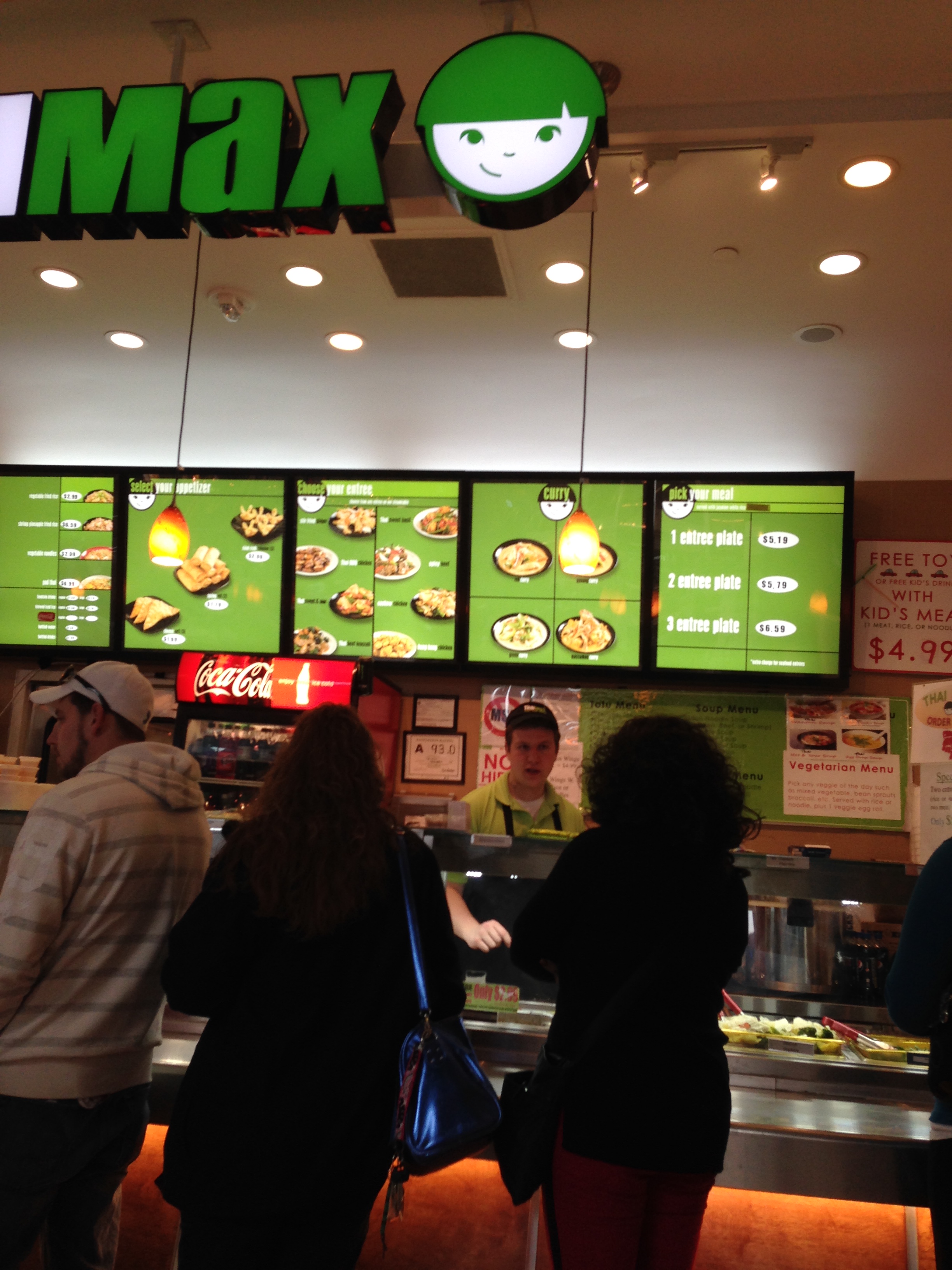 So that left two place; ThaiMax and Mandarin Express. I went with ThaiMax because the green and white bright colors attracted me. I’m serious, I am a sucker for contemporary looking food joints. If it has stainless steel and solid bright colors, most likely I will buy something from you. My partner decided to stick to the more traditional food court Chinese food and went to Mandarin Express.