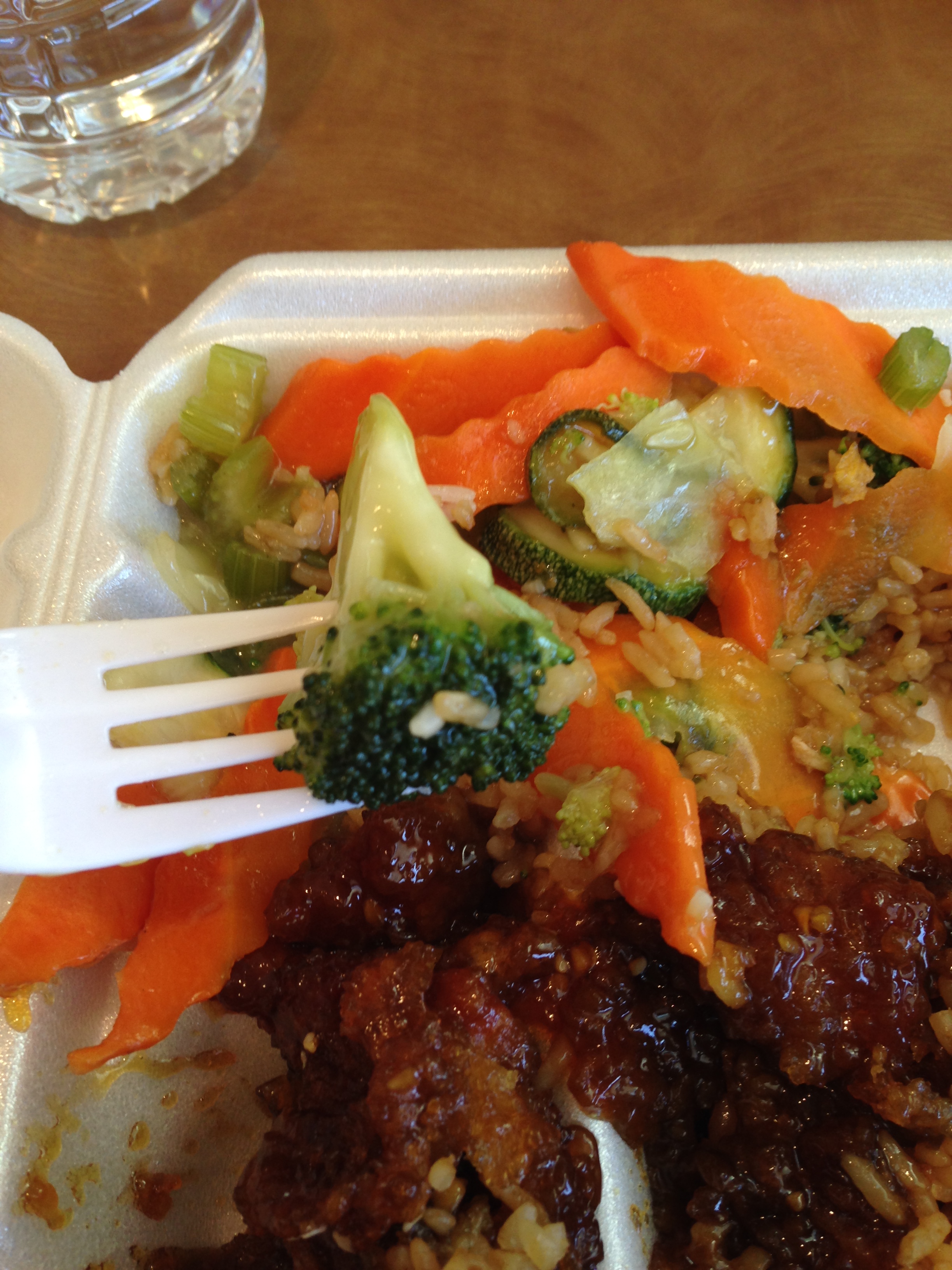Where do I begin? Let’s start with the sweet and sour chicken. First off, there was no visible sign chicken was ever there. It was as if they fried refried…fried. Just a big ol’ ball of fried gob dipped in sweet and sour sauce. Everytime I took a bite, it literally fought me from chewing it completely. I don’t know what they fried in there but I am hoping it doesn’t end up being a channel 14 exclusive story.