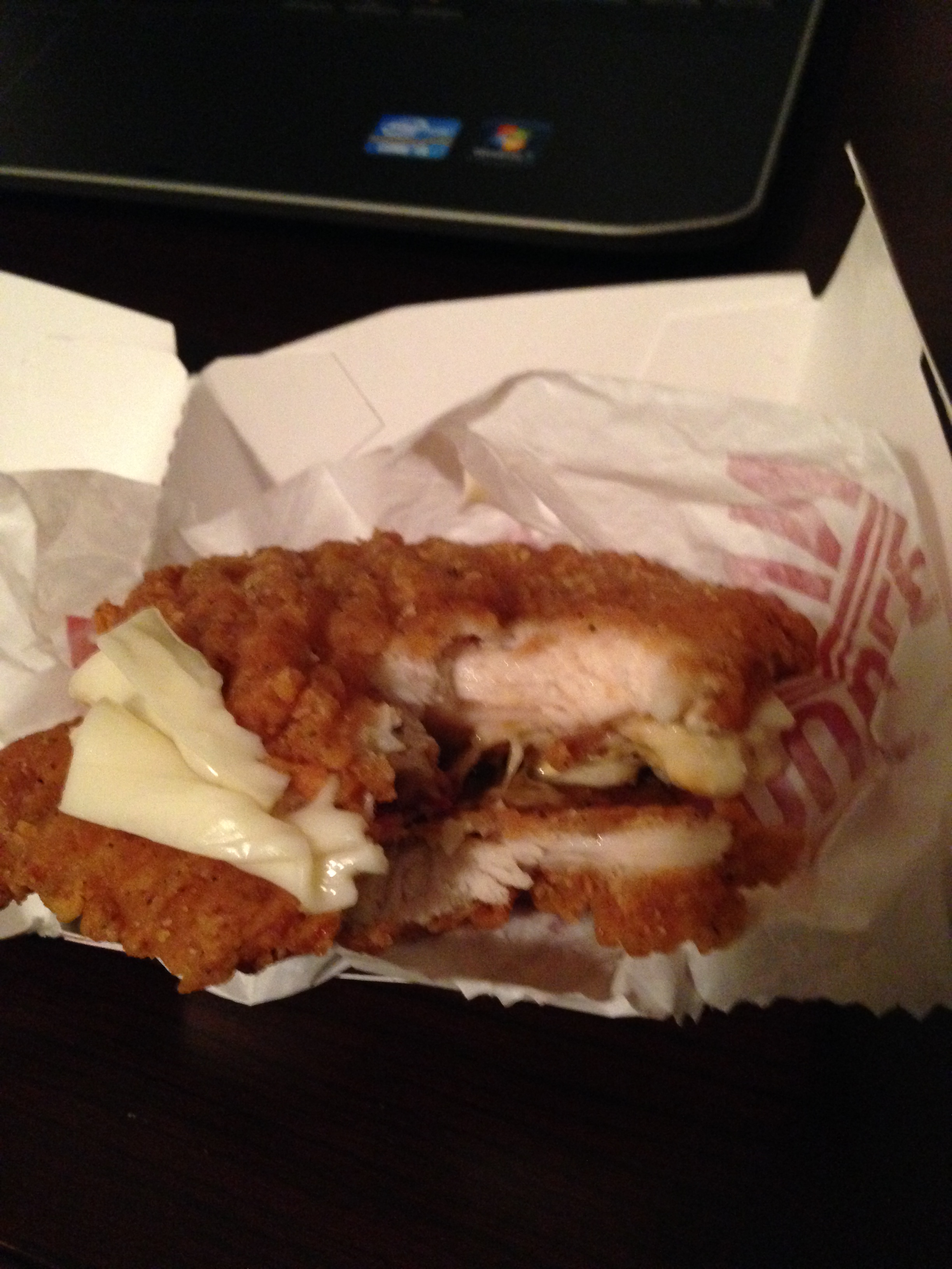 I am not going to lie to you, I was a little embarrassed ordering this thing. I’ll explain what it is in a minute, just incase you are unfamiliar, but I almost wanted to ask for a vegetable to balance out the order. KFC, however, scoffs at the thought of anything good for you so I was forced to look like the guy who just doesn’t give a shit. (I also had a Texas Pete stain on my shirt which I found later this evening. Class act)