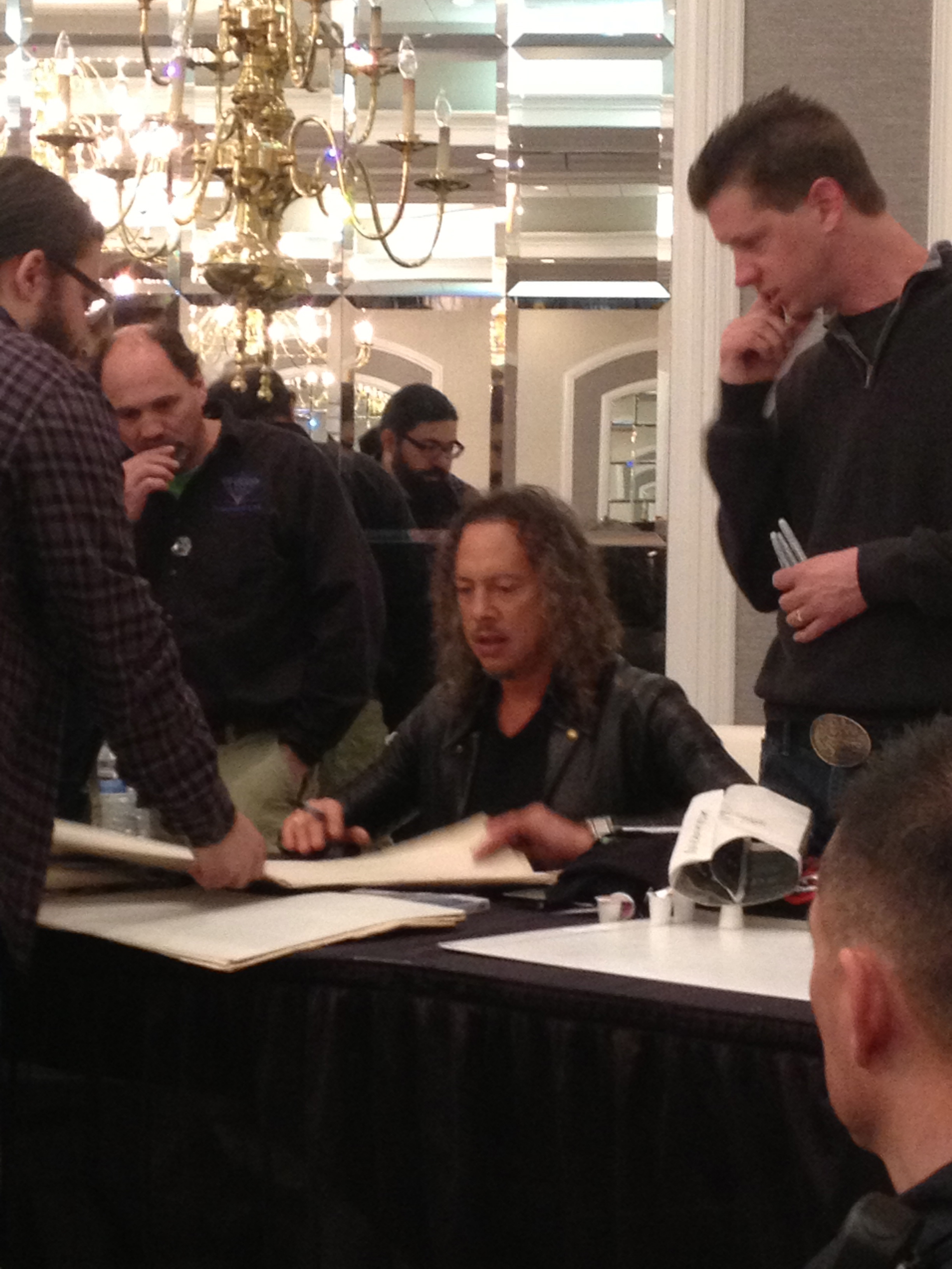 Good ol’ Kirk Hammett, the meekest member of Metallica, stopped by to sign his new book. It’s no secret that Kirk has always been into the retro monster flicks and masks so it seemed right for him to be there. He’s definitely the coolest and after that dump-in-a-jar documentary, Some Kind of Monster, he out shined the two women, Lars and James. If Metallica has lost many of its original fans, Kirk has been the bridge to keep the others.