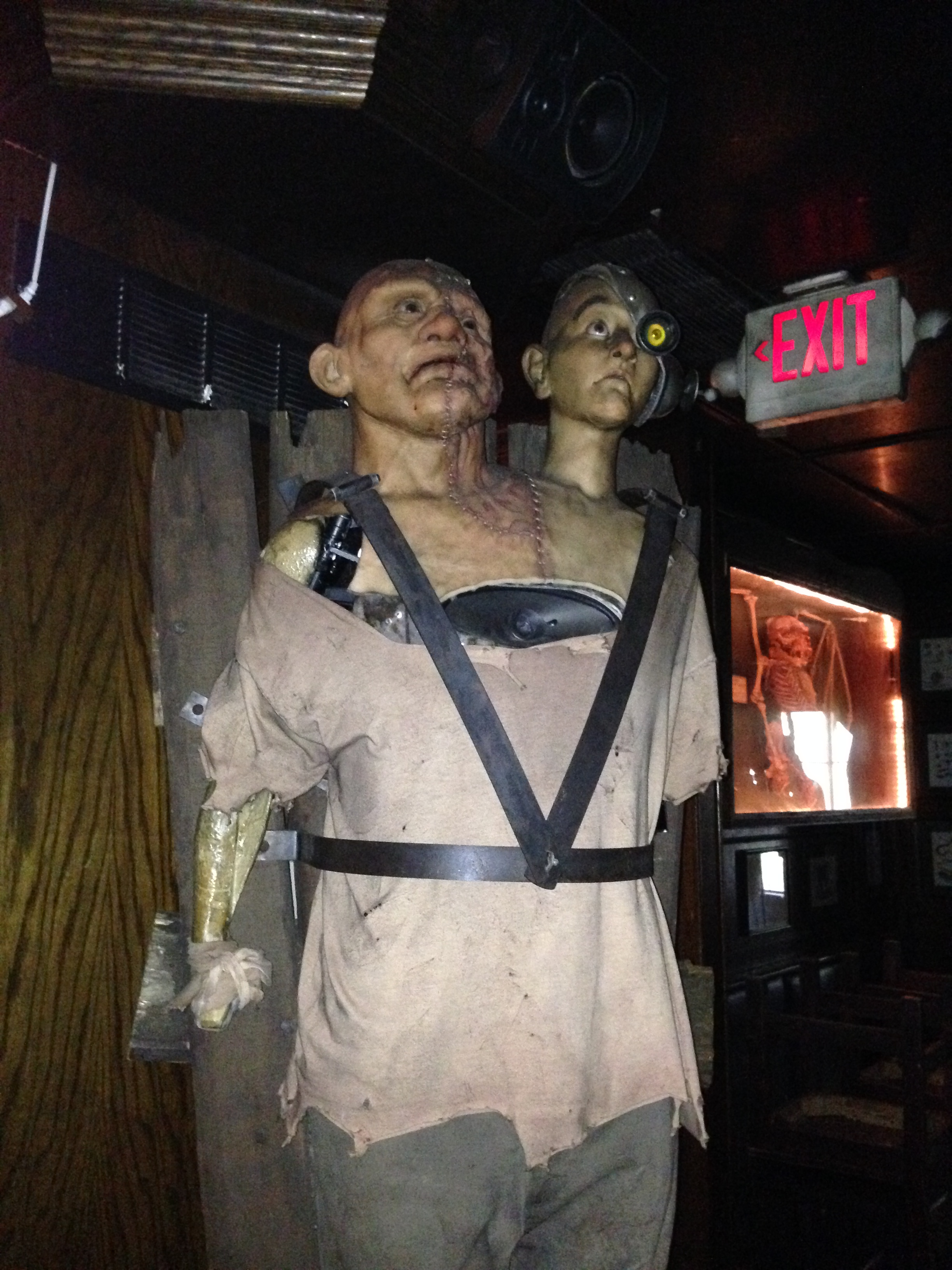 It’s no secret that life-size monster statues are my thing. Especially the ones that have creepy signs with stories from horror literature. This is a two-headed abomination that a mad scientist created only to have it turn and kill him. Pretty dark but this is a place for it to hangout. Don’t try to buy it a drink because your bill will always be double. (I’ll be here all week folks!)