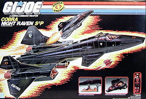 Behold what I found under a pile of coats, still in the old Toys R Us bag. The GI Joe Cobra Night Raven! I was overjoyed. I didn’t even know this was apart of the Cobra inventory. I sat there looking at the box of awesome when I heard Mom begin her famous long goodbye. You know the one moms do, “Okay…alright…you too…bye now”.