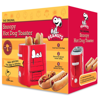 Today I was checking out the local CVS for their holiday loot and found a line of Snoopy (Peanuts™) products. The one that stood out the most was a hot dog toaster that not only toasts the bun but the hot dog too! The idea of a cartoon dog on a toaster that also cooks meat was almost too much. And those on Twitter agree since my picture of it was retweeted almost thirty times. There’s definitely a market for hot dog toasters.